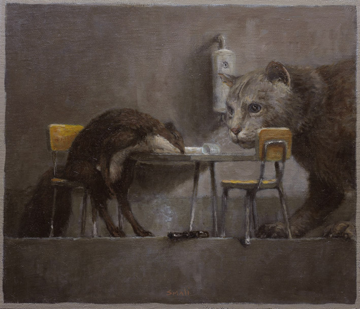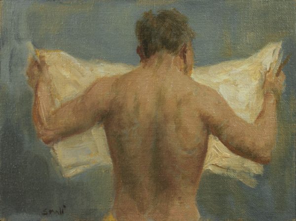 Paolo Smali nasce a Belluno, nel 1969. Inizia a dipingere giovanissimo. Nel 1983 la sua prima esposizione pubblica con un’opera dedicata alla “natura in posa” e contemporaneamente pratica lo studio del paesaggio dal vero. Nel 1988 si iscrive al corso di pittura all’Accademia di belle arti in Venezia, dove inizierà ad incidere nel 1990. Nel 1989 l’incontro e la frequentazione del suo Maestro Luigi Tito (1907-1991) gli permetterà di approfondire la conoscenza del disegno e della pittura. Studia l’arte che ama nei musei veneziani, copista al Museo Cà Rezzonico, alle Gallerie dell’Accademia di Venezia ed al Museo del Louvre. Nel 1993 la la Fondazione Bevilacqua la Masa gli concede come borsa di studio; un atelier, per alcuni anni, in Palazzo Carminati e l’organizzazione di esposizioni annuali nella prestigiosa sede in Piazza San Marco della stessa città lagunare. Seguono le prime collaborazioni con gallerie private e l’incontro con il collezionismo privato, realizzando numerose esposizioni personali e collettive. Monotipista, incisore e disegnatore. Paesaggista e Ritrattista, amante della Figura umana e della Natura in Posa, si confronta con il soggetto Sacro. Una parte della sua ricerca è dedicata ad opere di fantasia dette Visioni. Con la compagna e artista Nora Ferruzzi condivide viaggi e progetti artistici, di scrittura e pittura. Vive e lavora a Venezia, nell’Isola della Giudecca.